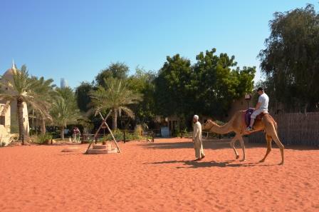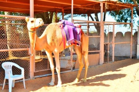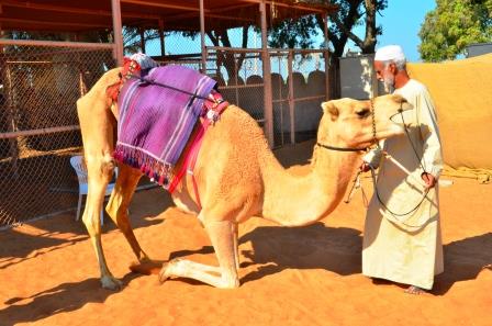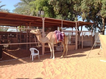 20AED程度(だったかな!?)で、ラクダに乗れます。時間は10分弱です。敷地は狭いので砂漠の砂の上を2周する程度ですが、中東の旅行の想い出にこの体験は必須でしょう。