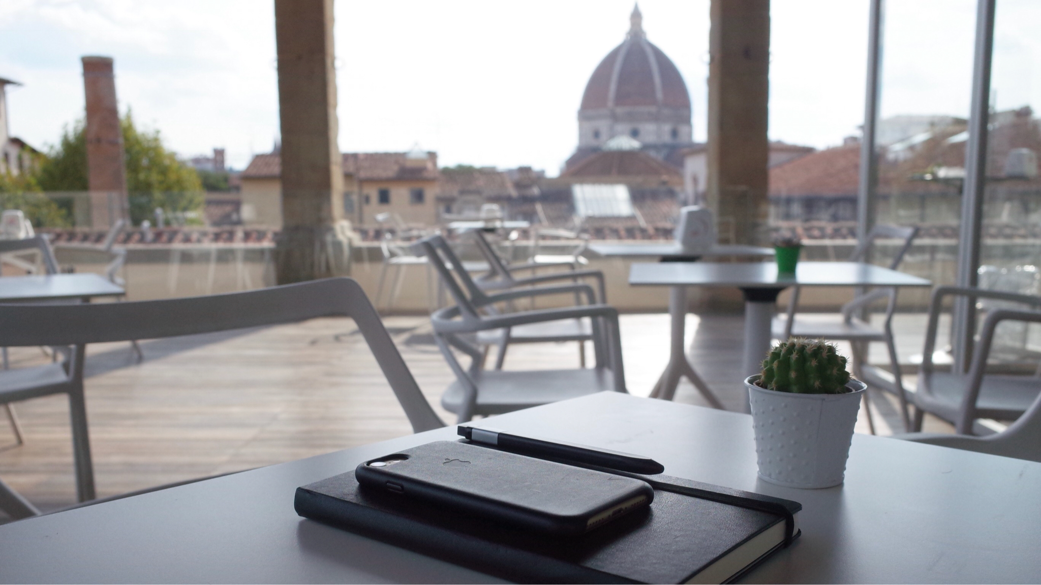屋上にあるため、喧騒から離れつつ、あたりを見渡すと、遠くにドゥオーモがひょっこり顔を出します。